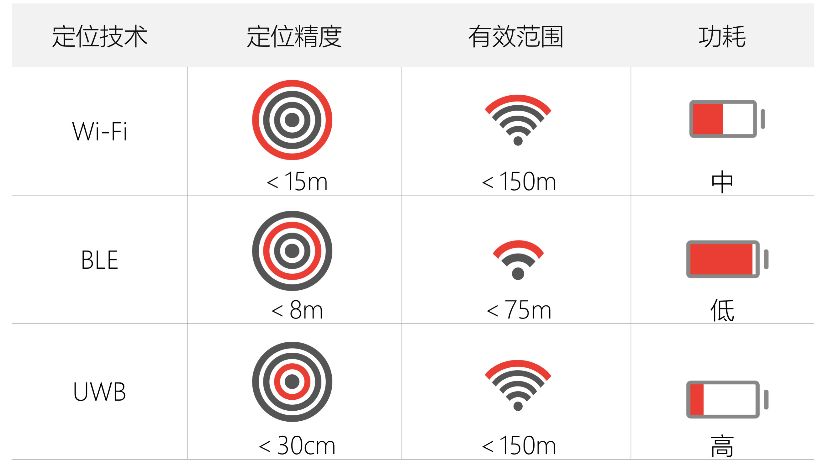 在定位精度方面UWB排名第一,可以達到30cm以內,其余技術的定位精度均在1m以上,遠遠低于UWB。同時在安全性,定位范圍等,UWB也是較高的。